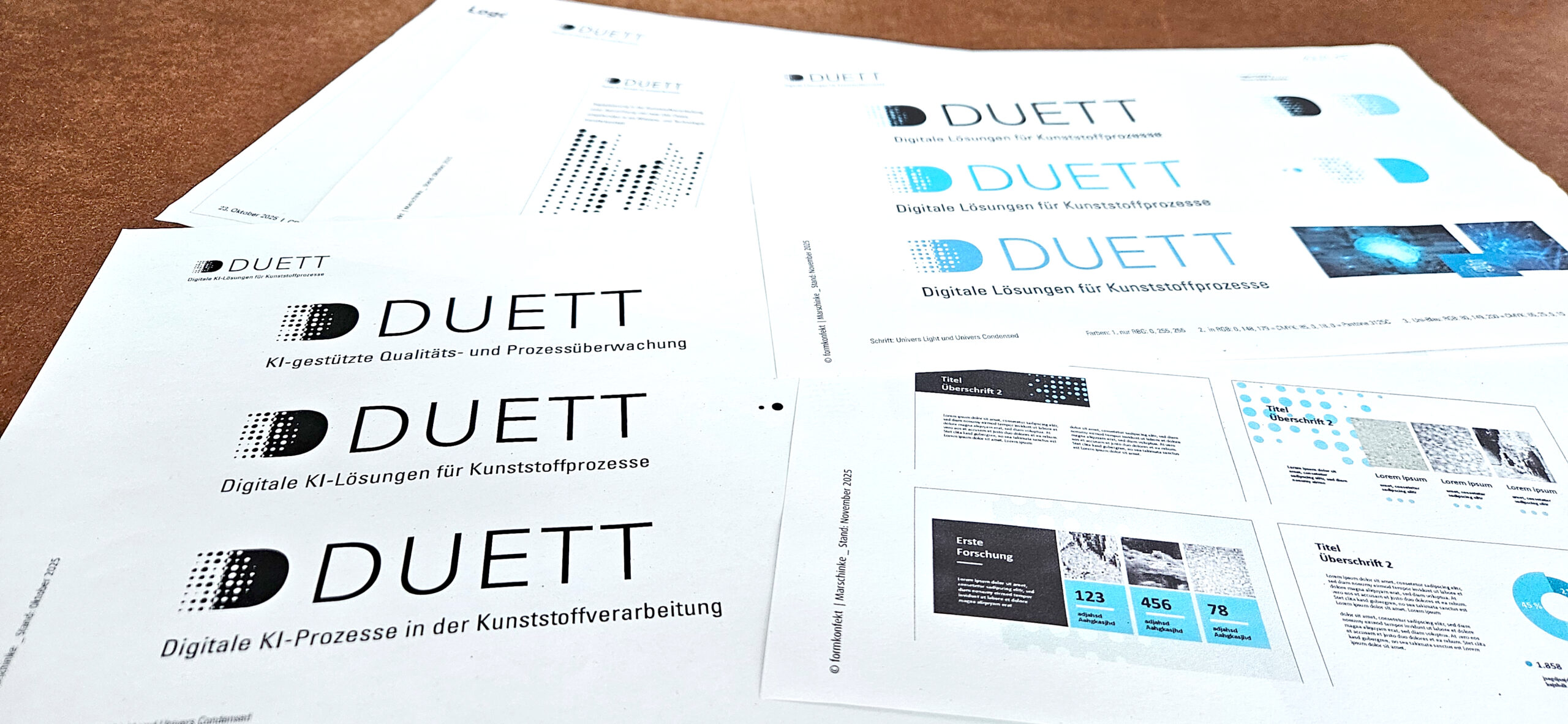 Logoentwicklung für: DUETT = „Digitalisierung in der Kunststoffverarbeitung unter Betrachtung von zwei Use Cases, eingebunden in ein Wissens- und Technologietransferkonzept“.