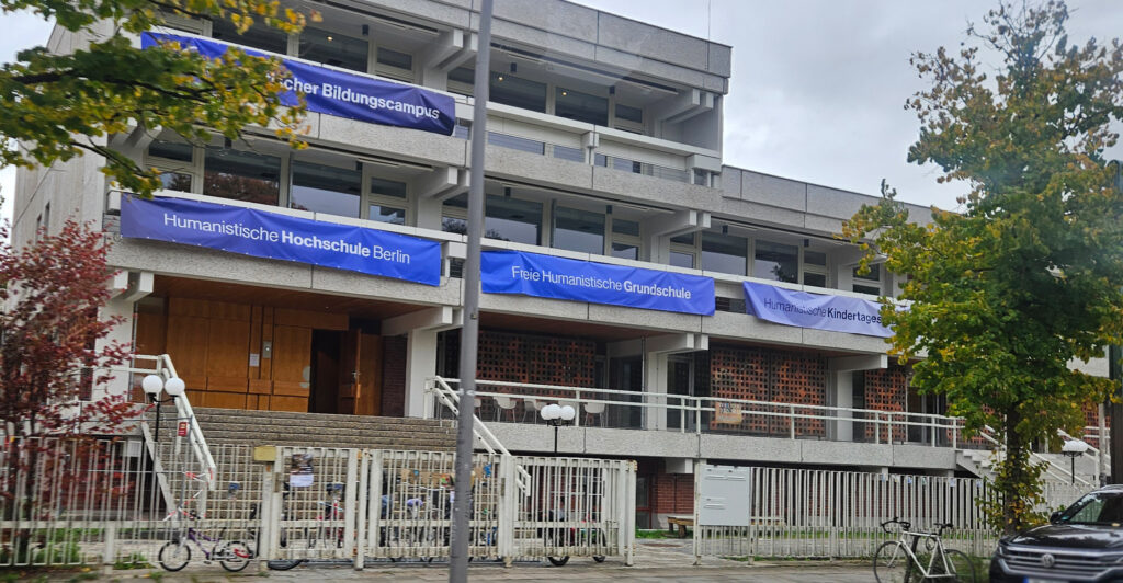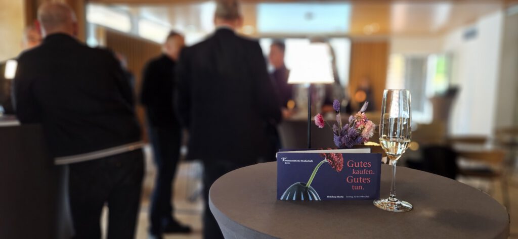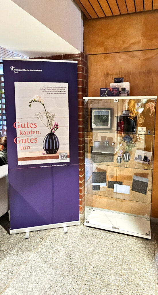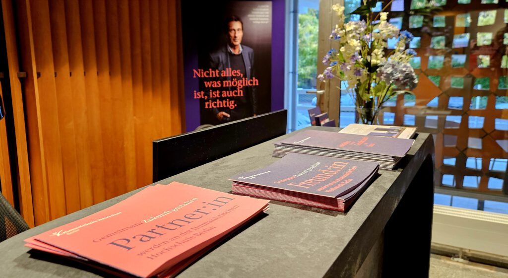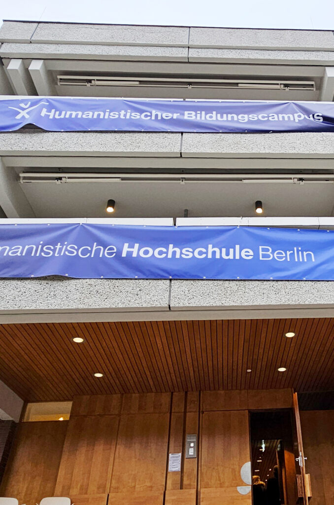 Und wie wunderbar, dass ich das Marketing-Team der noch ganz jungen Humanistischen Hochschule Berlin darin begleiten darf! Ende 2025 wurde ich zur feierlichen Eröffnung des neuen Bildungscampus in Berlin-Pankow eingeladen. Prof. Dr. Dr. Nida-Rümelin (oben auf dem Rollup zu sehen) hielt als Gründungsrektor der HHB eine mitreißende Rede.